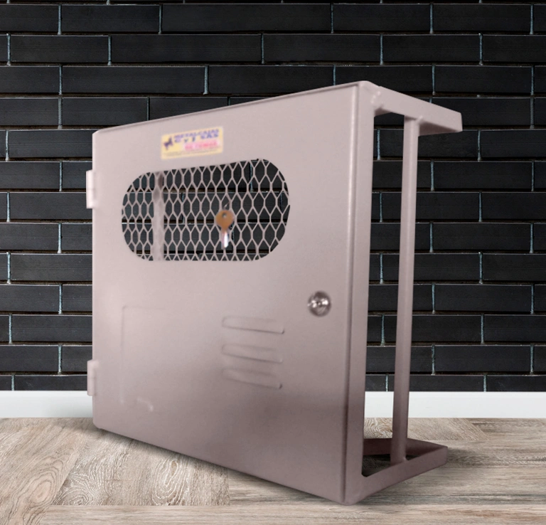 Con marco en ángulo y puerta en lámina con malla portacandado o chapa.